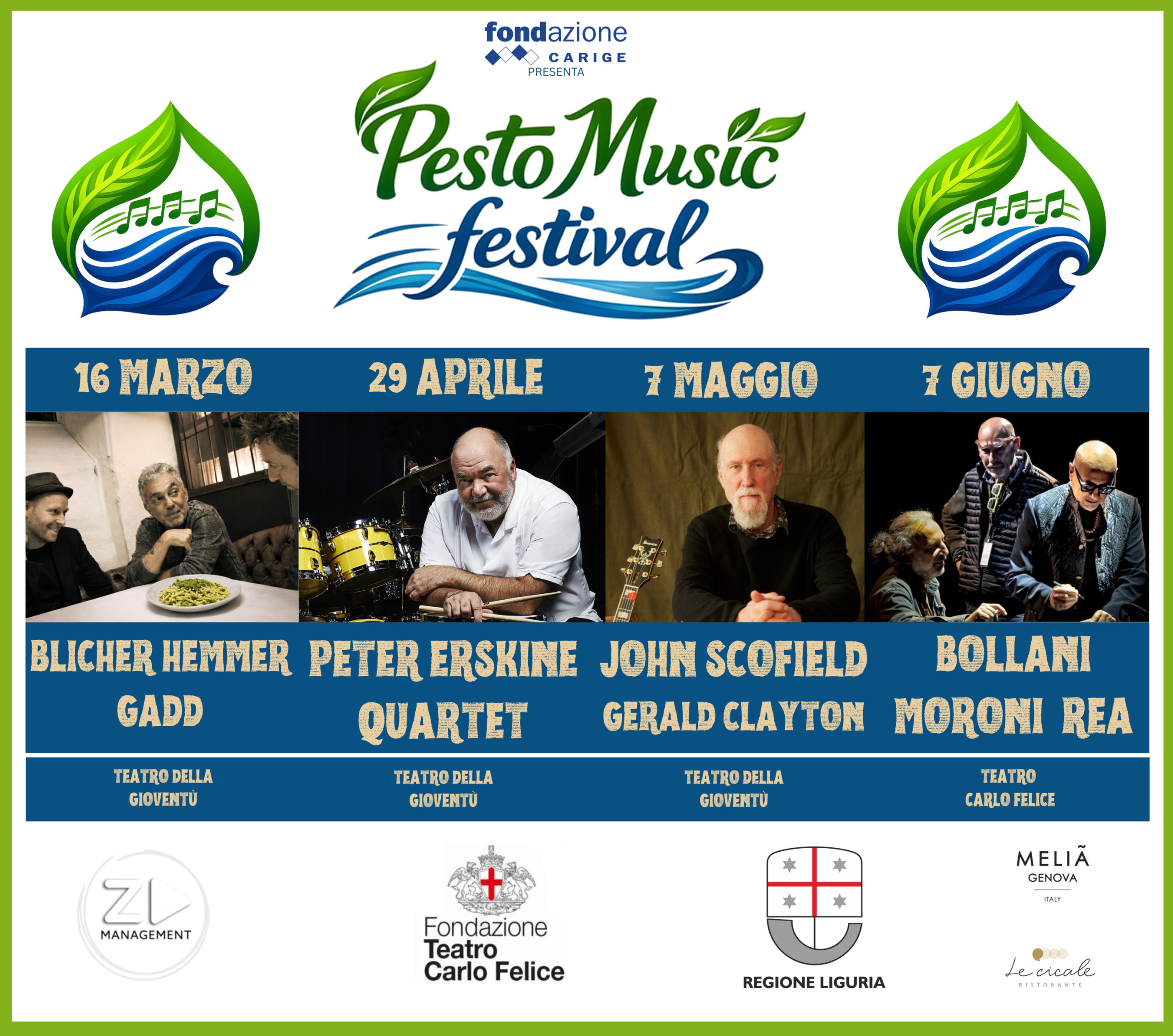 Genova si prepara ad accogliere una nuova e prestigiosa rassegna musicale: nasce il Pesto Music Festival, un appuntamento dedicato alla grande musica dal vivo che porterà in città alcuni tra i più importanti protagonisti della scena jazz internazionale e italiana. Un Festival fortemente voluto da Fondazione Carige sotto la direzione artistica di Zenart Management, patrocinato da Regione Liguria e in collaborazione con la Fondazione Teatro Carlo Felice.